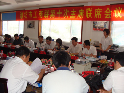 6月6日上午,濰坊市工商聯(lián)十次主席聯(lián)席會議在我公司二樓會議室召開,會議由濰坊市委統(tǒng)戰(zhàn)部副部長,市工商聯(lián)黨組書記孫向林主持。參加會議的還有市工商聯(lián)副主席陳有本、秦學(xué)民、張啟云以及市有關(guān)企業(yè)負責(zé)人共30余人。會上,市工商聯(lián)副主席,我公司董事長兼總經(jīng)理王兆連做了工作匯報。濰坊興業(yè)銀行與市工商聯(lián)主席、會長企業(yè)對接座談,各會長企業(yè)評議了市工商聯(lián)深入學(xué)習(xí)實踐科學(xué)發(fā)展觀活動分析檢查報告。會后參觀考察了我公司。