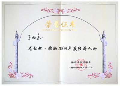 公司總經(jīng)理兼董事長(zhǎng)王兆連榮獲龍韻臨朐2009年度經(jīng)濟(jì)人物