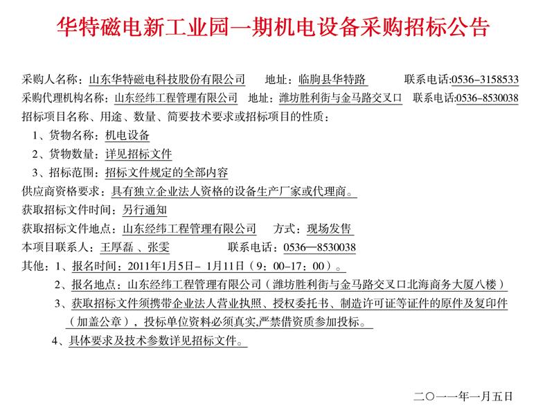 山東華特磁電集團股份有限公司是創新型試點企業,高新技術企業,火炬計劃臨朐磁電裝備特色產業基地龍頭企業,磁電與低溫超導磁體創新戰略聯盟理事長單位、中國重型機械工業協會副理事長單位。