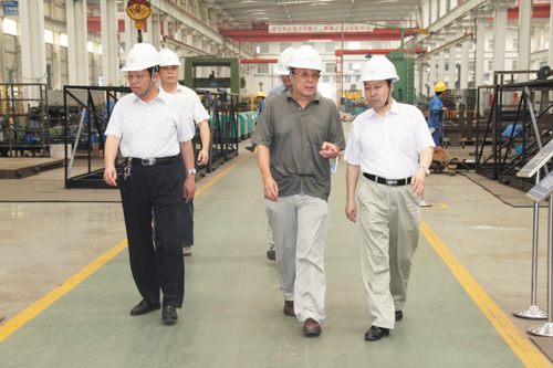9月3日,中國重型機械工業協會常務副會長李鏡,在縣經信局長張愛俊,縣機電協會會長李玉凱陪同下來公司參觀指導。公司董事長兼總經理王兆連陪同參觀了技術研發中心、展廳及生產車間。