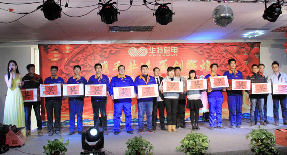 2017年元月20日下午,山東華特公司2017年春節(jié)聯(lián)歡會在公司二樓餐廳隆重舉行。公司董事長兼總裁王兆連,常務(wù)副總裁劉風(fēng)亮,公司董事、副總裁劉梅,副總裁王建波,公司董事、工會主席王學(xué)軍,總裁助理魏黎明、劉西軍,財務(wù)總監(jiān)、董秘孟昭剛,公司監(jiān)事會主席、總工程師賈洪利及濰坊新力超導(dǎo)磁電科技有限公司常務(wù)副總李培勇等全體員工齊聚一堂,繼往開來,其樂融融。