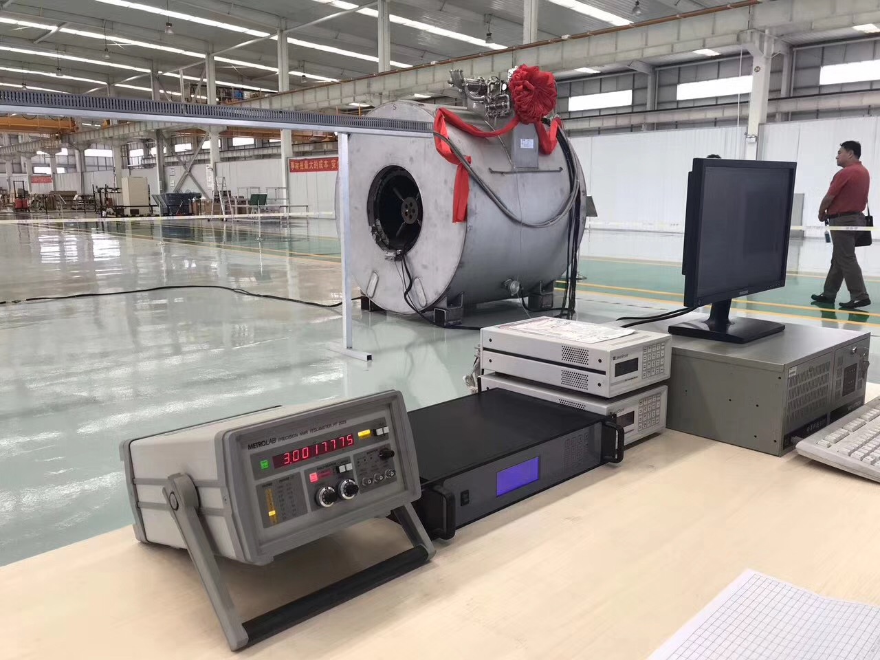 與會(huì)專家、各級(jí)領(lǐng)導(dǎo)、磁共振整機(jī)廠家、醫(yī)院代表等參會(huì)人員到我公司全資子公司濰坊新力超導(dǎo)磁電科技有限公司參觀了磁共振系列產(chǎn)品的生產(chǎn)現(xiàn)場,現(xiàn)場檢測了3.0T/850型核磁共振分子成像超導(dǎo)磁體樣機(jī)的磁場強(qiáng)度、磁場均勻度、磁場穩(wěn)定度等關(guān)鍵技術(shù)指標(biāo)。