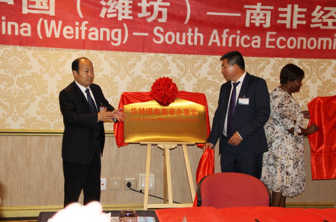 9月11日下午,由濰坊市人民政府主辦,南非AMG集團公司和山東華特磁電科技股份有限公司共同協(xié)辦的“中國(濰坊)—南非經(jīng)貿(mào)懇談會”在美麗的約翰內(nèi)斯堡市凱撒皇宮大酒店會議廳隆重舉行。