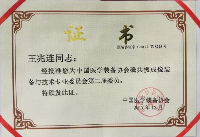 會議由北京大學醫(yī)學部科研處處長、學科建設辦公室主任韓鴻賓教授主持,中國醫(yī)療裝備協(xié)會趙自林理事長、任健監(jiān)事長、磁共振專委會顧問馮義濂教授、主任委員張云亭教授、常務委員王洪教授等相關領導出席會議。主任委員張云亭教授作第一屆磁共振委員會工作報告并介紹換屆籌備過程,醫(yī)學裝備協(xié)會任健監(jiān)事長對換屆選舉過程進行監(jiān)督并宣布選舉結果。大會一致通過專委會主任委員、常務委員人選,并由中國醫(yī)學裝備協(xié)會趙自林理事長頒發(fā)了證書。濰坊新力超導公司董事長王兆連當選本屆中國醫(yī)學裝備協(xié)會磁共振成像裝備與技術專業(yè)委員會委員。