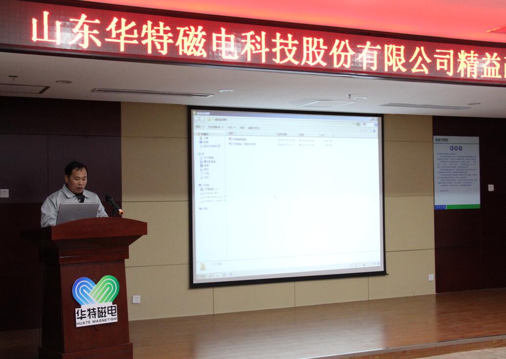2018年1月14日,為進一步提升山東華特磁電科技股份有限公司管理水平,增強公司競爭力,實現企業高速發展,公司組織召開了精益生產二期項目的簽約、啟動儀式和誓師大會。公司董事長兼總裁王兆連、山東華制智能制造技術有限公司項目總監王樹功、項目經理王金泉等四位專家出席會議,公司常務副總裁劉風亮、高級副總裁劉梅、副總裁兼精益辦主任王建波、各部門負責人以及主管級以上領導參加會議。