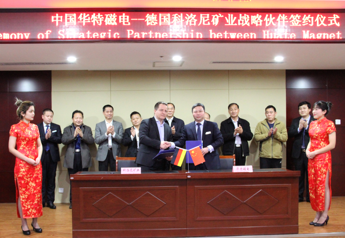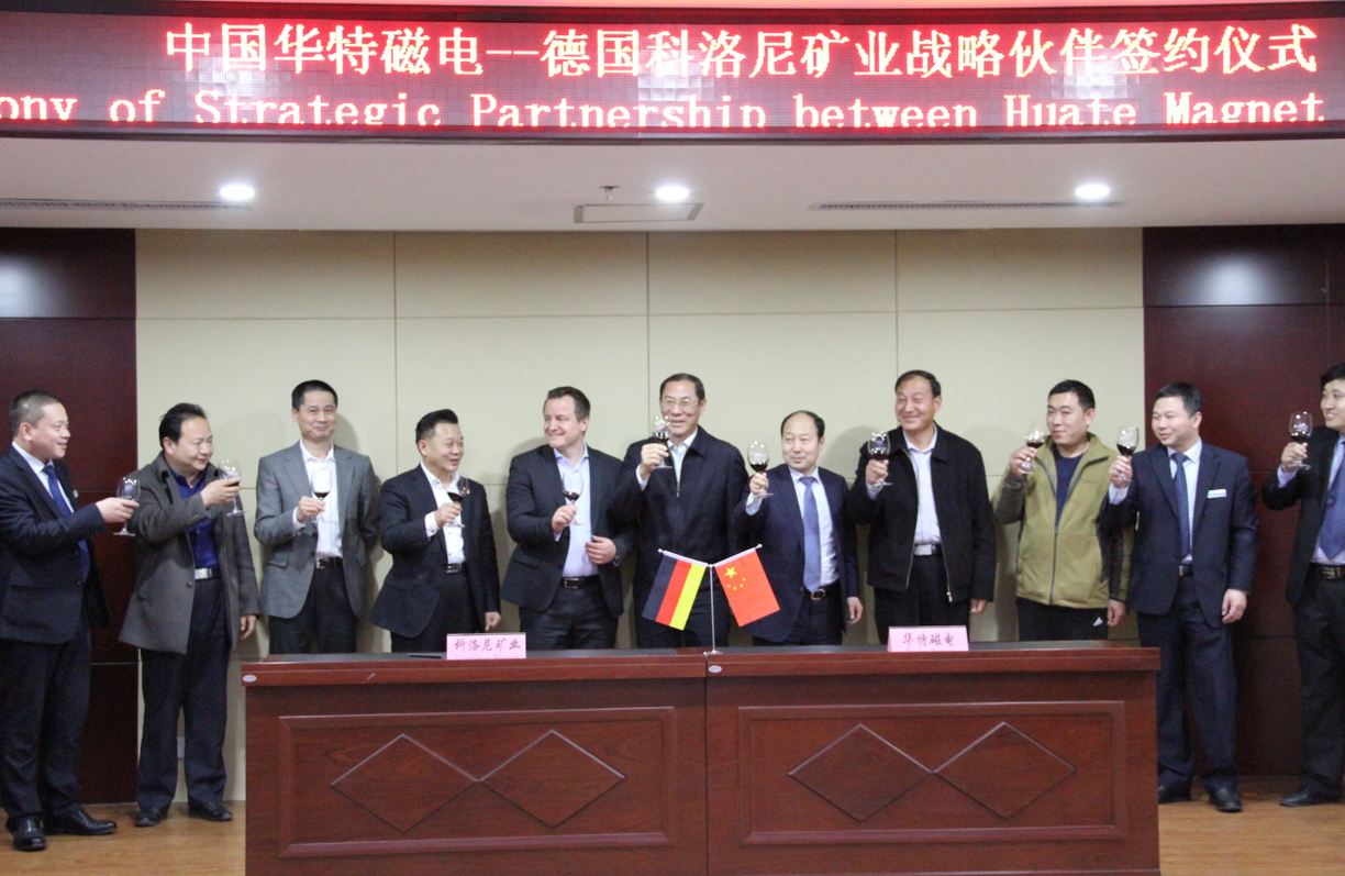 3月7日,春風和煦,生機盎然。在華特公司會議大廳,華特磁電與德國科洛尼礦業(yè)集團舉行隆重簽約儀式。德國科洛尼礦業(yè)集團副總裁穆瑟先生,中共臨朐縣委常委、常務(wù)副縣長郭家榮,臨朐經(jīng)濟開發(fā)區(qū)主任、城關(guān)街道黨工委書記白文玉,臨朐經(jīng)濟開發(fā)區(qū)管委會副主任尹德忠,公司董事長兼總裁王兆連等領(lǐng)導共約40多人出席簽約儀式。