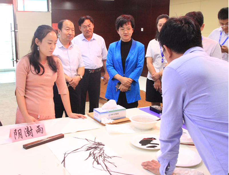短暫的座談會后,畫家們來到了公司二樓多功能大廳開始了書畫創作。臨朐美術名家參加活動的有:傅立、白星安、王法生、姜會信、王春國;臨朐書法名家參加活動的有:張頤人、宋智利、劉建華、周世民、楊文梁。老師們書畫創作的熱情高漲,一直創作到下午1:00才收筆。