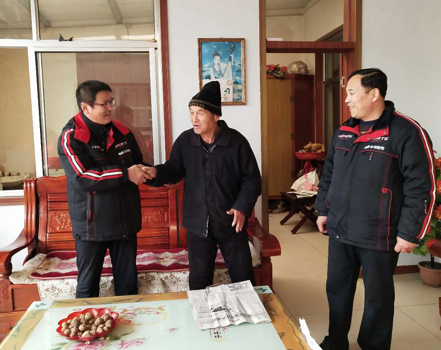 在老莊子村,慰問組在村兩委成員的陪同下,走訪慰問了因病、因傷等情況致貧的困難戶。慰問組每到一戶都主動詢問他們的家庭情況、經(jīng)濟來源、生活條件以及他們生活中的困難,為他們送去了油、米、面等生活用品,同時傳達了公司董事長王兆連和全體員工的關(guān)懷與祝福,鼓勵他們歡歡樂樂過春節(jié),健健康康迎新年。告訴他們黨和政府不會忘記他們,遇到困難及時聯(lián)系,村兩委和華特公司是他們的堅強后盾。