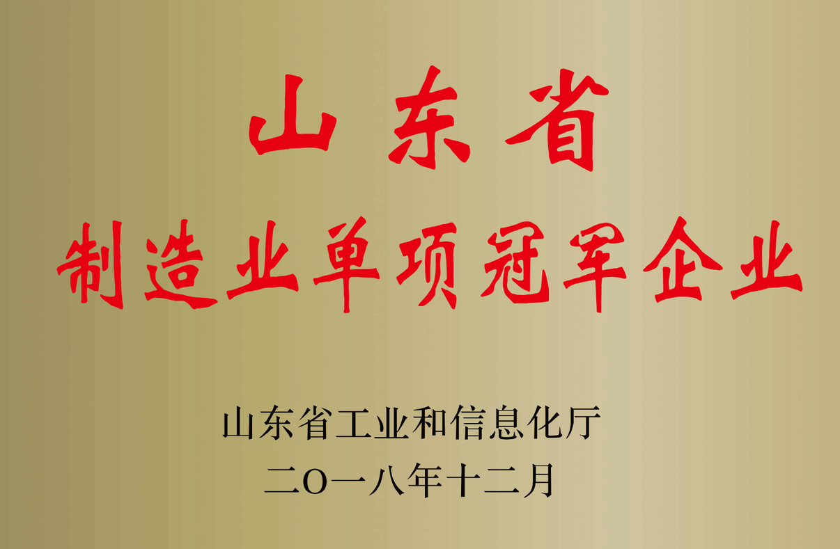 ● 公司榮獲2018年度“山東省制造業(yè)單項冠軍”稱號