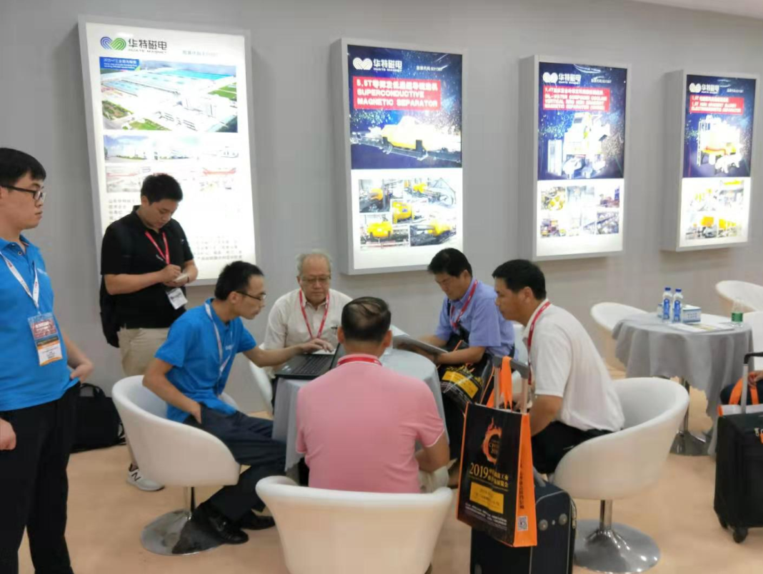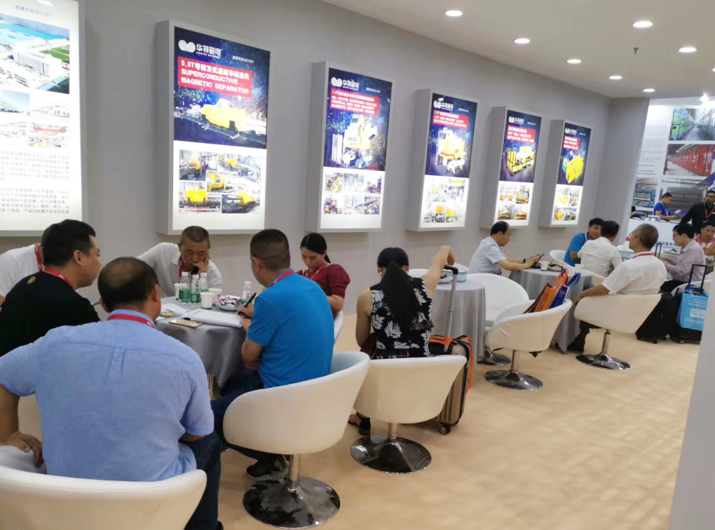 本次展會,華特磁電攜1.8T強油冷卻立環高梯度磁選機、1.5T電磁漿料高梯度磁選機、5.5T低溫超導磁選機、單傳動高壓輥磨機,濕式強磁板式磁選機等核心產品盛裝亮相,四天展期中,蒞臨展位參觀的客戶絡繹不絕。