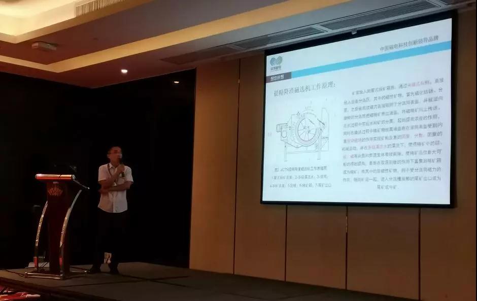 華特公司高級選礦工程師安峰文作為特邀嘉賓,在本次大會上作《新型節能環保磁電選礦裝備的研究與應用》的主題報告,綜合性地闡述了當前國內外超細粒級礦石加工利用現狀,并向與會人員詳細介紹了華特選礦裝備的研發與應用情況,引起現場與會人員的熱烈反響。
