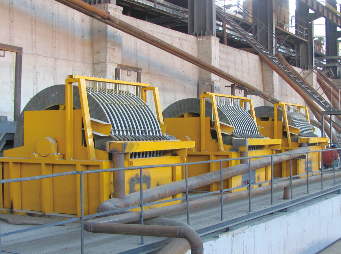 ◆磁性圓盤為環(huán)形半磁結構,集料盤(外殼)采用全密封,集料盤下部浸沒在礦漿槽中,通過連續(xù)旋轉的方法不斷吸附礦漿中的磁性顆粒。