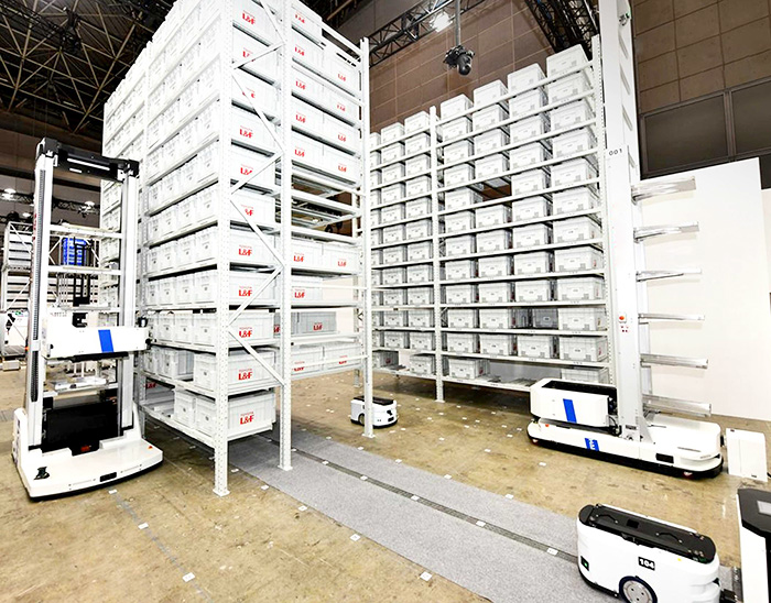 智能搬運:4臺料箱機器人負責庫內高位料箱搬運,將高層料箱精準轉移至底層待取位。